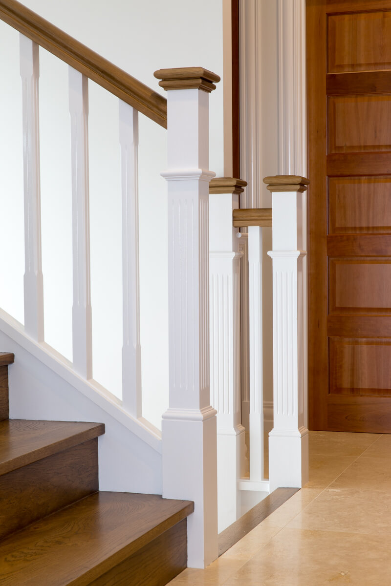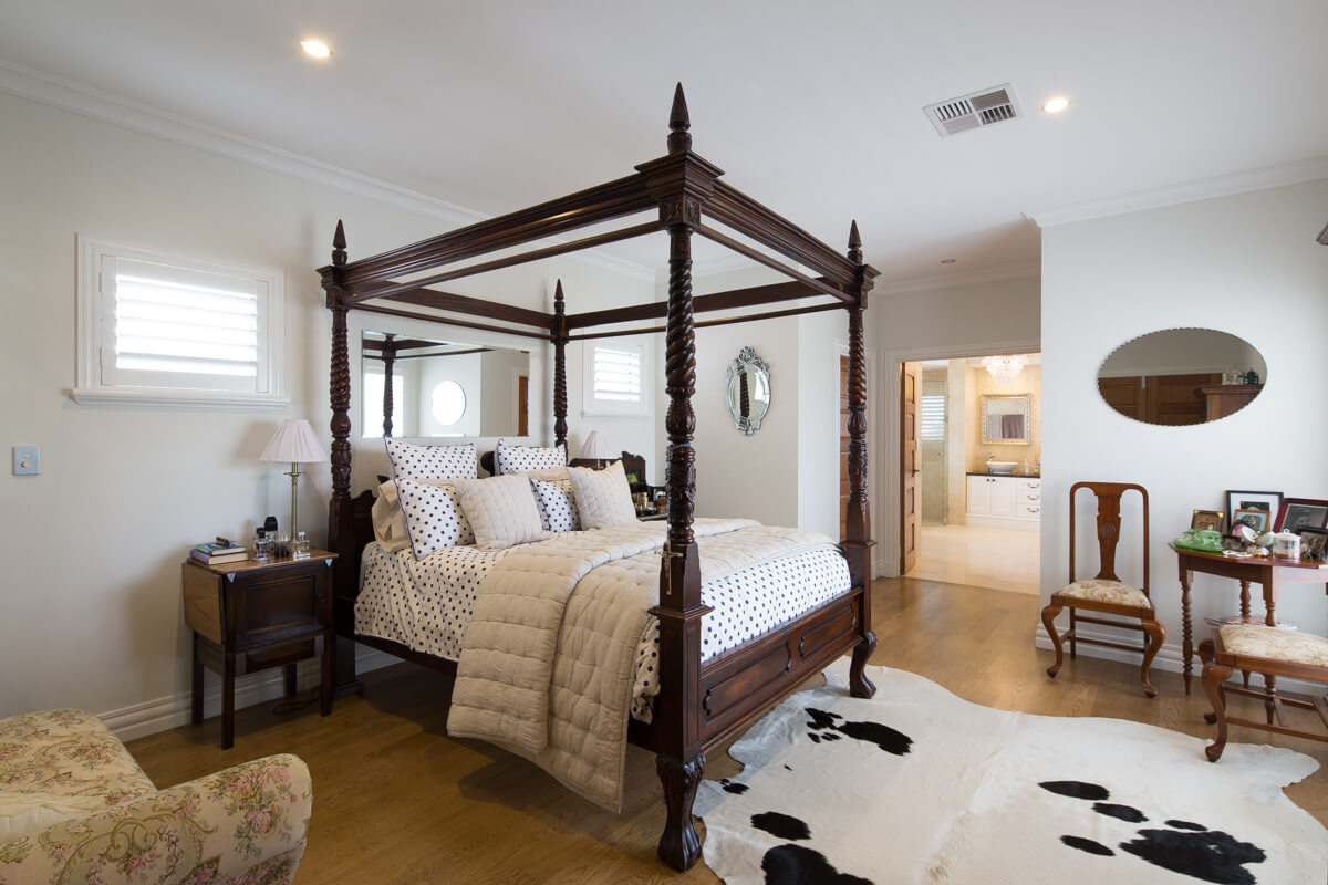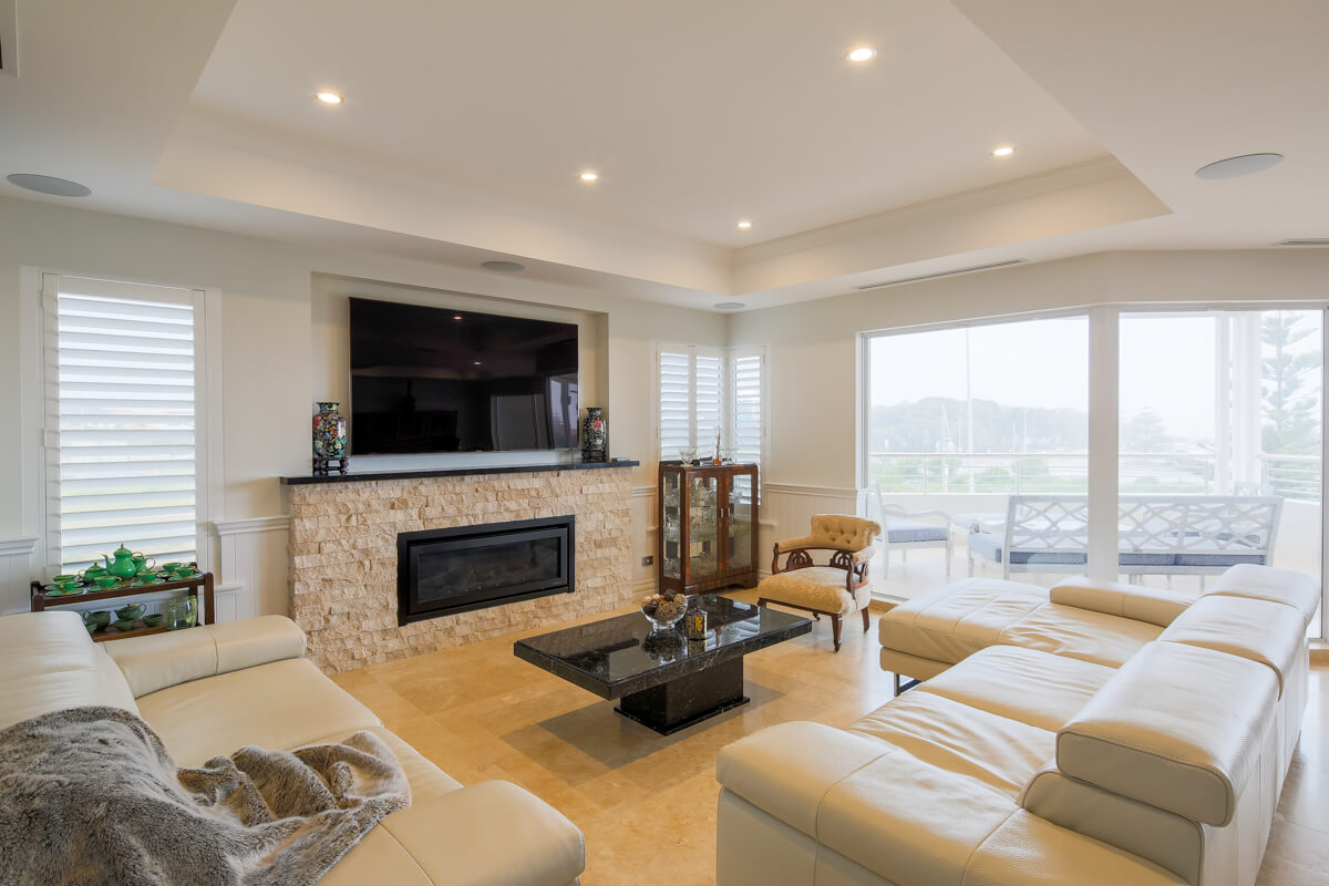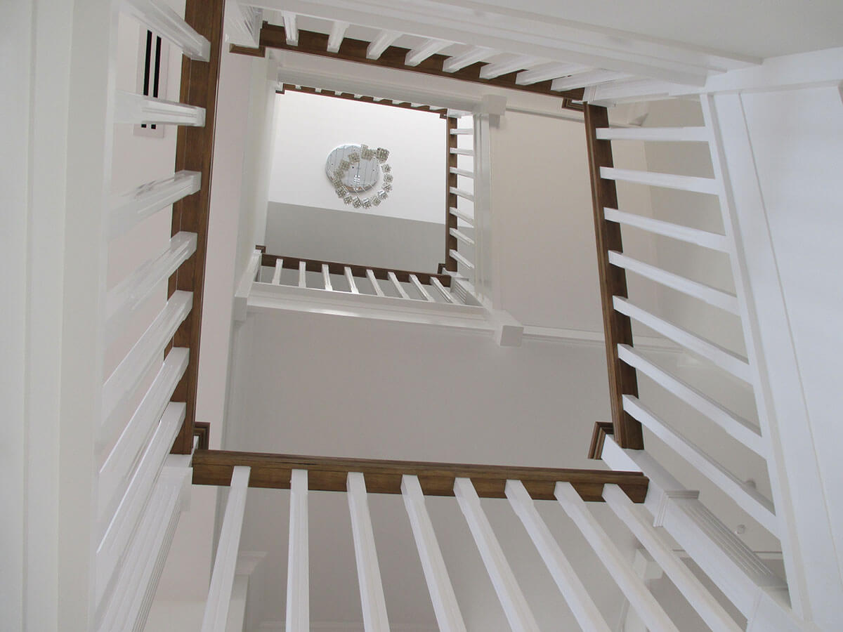 The unique floorplan incorporates a tower with two internal levels, ensuring all of the client’s desires could be accommodated, including a luxurious master-suite, music room, loft, theatre room, minor bedrooms, activity room, and study, all connected by a central lift and a timber staircase with white polished timber handrails and white painted post balustrading.