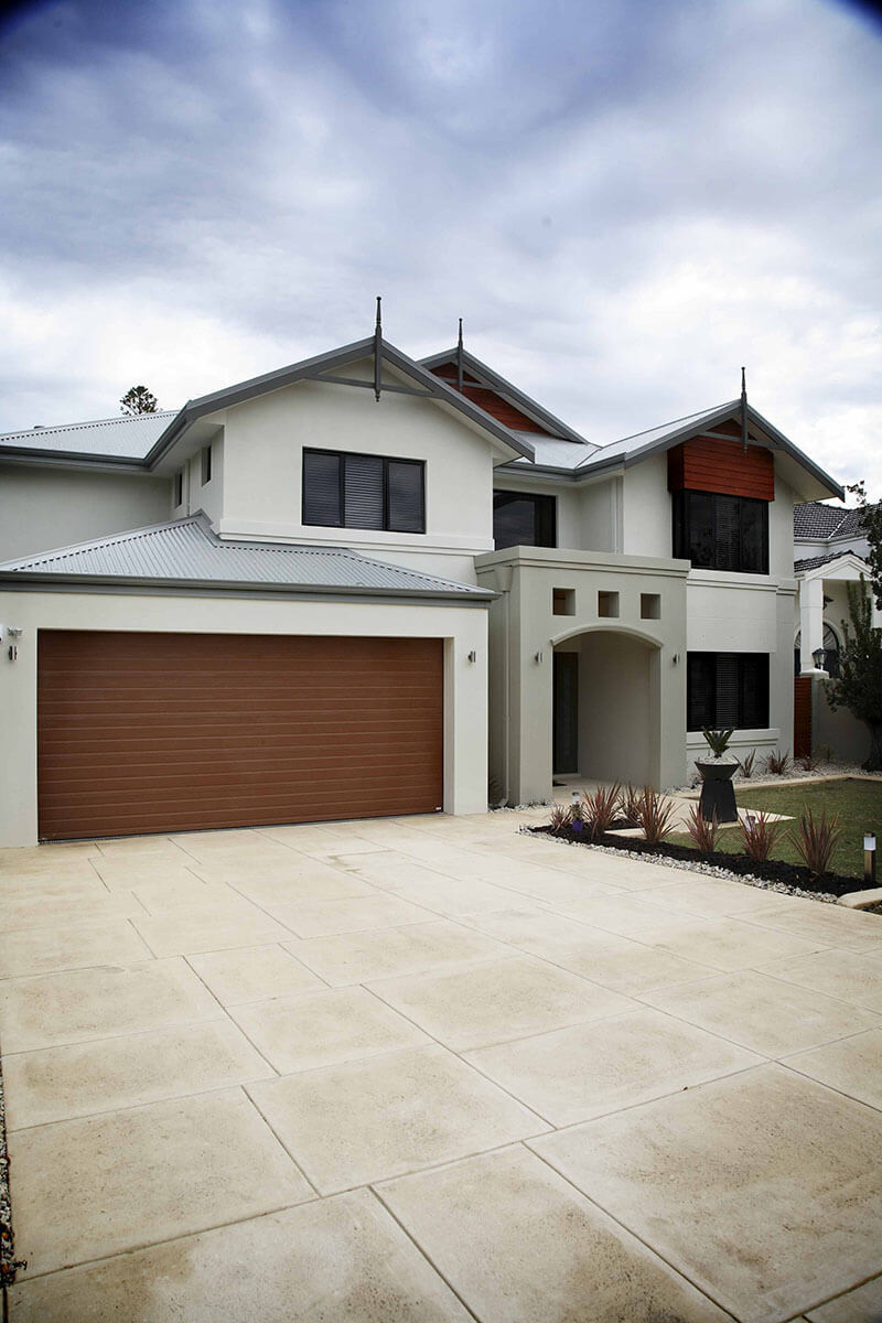 A combination of different toned render, portico entry with cut outs and feature cedar cladding, create the timeless modern façade of this stylish South Perth residence.