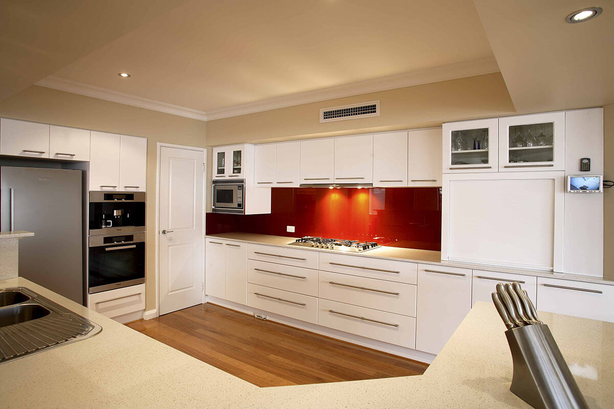 A cleverly thought-out floor-plan creates for expansive spaces that can also be closed off through bi-folding doors. Quality materials throughout include polished timber flooring through the main living spaces reflecting the calibre of the home which has been finished with Artique’s renowned attention to detail. At the heart of the home, the kitchen features a walk-in pantry and ample storage to ensure everything has a place. A bold red glass splash back and engineered stone benchtops add modern appeal to the space. Creating seamless connection between interior and exterior spaces, sliding doors provide access to a gorgeous covered alfresco area with cedar lined ceiling offering the perfect place to enjoy warm summer evenings.